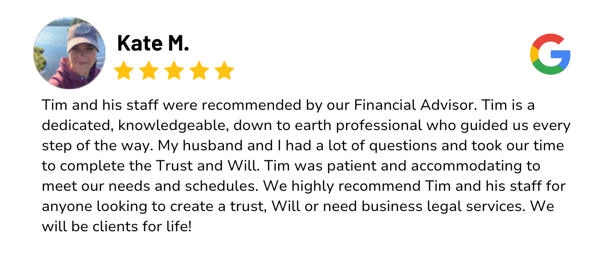 EXCELLENT Based on 74 reviews Posted on Conor Hastings As professional as a business can be: I recently started an LLC. with the help of Beaupre Law, a service that they provide but do not specialize in. They were always pleasant and punctual with every appointment and provided useful information along the way, but by the end of our business dealings I had some grievances about the services rendered to me that I called and voiced to Tim and his staff. The way the staff handled the situation surprised me, and the way they reconciled my problems provoked me to write what I believe is my very first google review. We all make mistakes, to err goes hand in hand with the human experience. But what makes an extraordinary human an outlier is how they chose to handle those mistakes. THAT is what defines our character, how we choose to handle adversity. I wasn’t expecting any special treatment when I called to voice the concerns I had with their services, but Tim and his staff went out of their way to make amends with me and try to make things right with me. And if that’s not a business you’d want to work with, then I’m not really sure what else you could possibly be looking for. Friendly, knowledgeable, accessible, and a sense of humility to boot? That’s fairly rare these days. If you’re on the fence with where to go, go Beaupre Law. Thanks again guys.Posted on Matt Lynch Outstanding Estate Planning Experience with Tim Beaupre. Working with Tim Beaupre on our estate planning was an incredibly positive experience from start to finish. His well-structured roadmap made the entire process—from the initial free consultation to updating all our accounts and real estate— straightforward and stress-free. Tim had many experiences and family practice stories that made the process relatable and easy to understand. Tim covered every aspect of estate planning thoroughly, addressing all our concerns. His advice was invaluable, and choosing to work with a seasoned professional like him turned out to be one of the best decisions we made. The process not only gave us peace of mind but also ended up saving us significantly more than the legal fees. The office staff was equally impressive—professional, courteous, and efficient. Highly recommend Tim Beaupre for anyone seeking expert, trustworthy estate planning.Posted on Lynette Tozier Excellent service. Mr. Beaupre explained all options regarding wills vs trusts. Timely work and follow up appointments. He took time to review documents prior to signature. I especially liked the automated texts and email reminders. It was a great experience.Posted on Sandy Chin We are so grateful to Tim. He helped us to painlessly modify our estate plans, helped us think through different scenarios we hadn’t thought of, and saved us money on future taxes. Everything was well organized and executed. He is a pleasure to work with.Posted on Kim Schofield The idea of doing all of family estate planning on our own seemed like a daunting task, and not one that my husband or I had the time to accomplish. The process was incredibly easy with Tim and his firm. We provided Tim with the necessary information and he did the rest. We just had to show up to sign the many papers. :-) Great service, professional, friendly, and knowledgeable. Two thumbs up!Posted on Julee Katzman My husband and I were exceptionally pleased with the estate planning service we received from Tim. It was well organized from start to finish. He made such an important and potentially difficult process feel easy and streamlined.Posted on T J Beaupre Law changed how I think of working with a lawyer. Communication is excellent, using their portal to communicate improved the process. Clearly defined fees and offerings, very professional staff and the whole process was painless not painful. My wife and I got our trust, will, living will, power of attorney all done in less then 30 days. Try them you won't be disappointed.Posted on Carol Stokes Beaupre Law was professional, courteous, and easy to work with. I received a call back from the firm quickly and was able to talk with Tim about the work I needed completed, ask questions, and have a opportunity to understand the process. The work was done on a timely basis and on schedule. I found everyone at the firm friendly, caring, and responsive. I would recommend Beaupre Law highly.Posted on Deborah Scotton Beauprie Law was extremely good in developing our Will. They are timely in responding to us when needed. Highly recommend this practice.